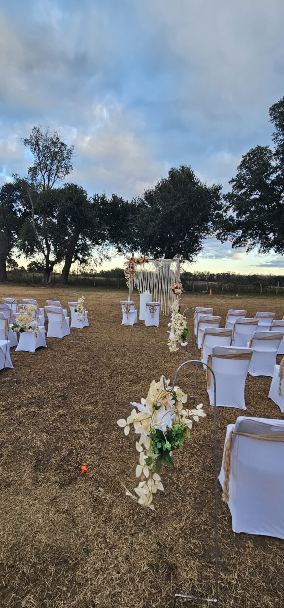 To get this plan you shall have a minimum of 20 guests seating (you can choose between 1. plastic chair + cover + sachet or 2. resin white chair + sachet).